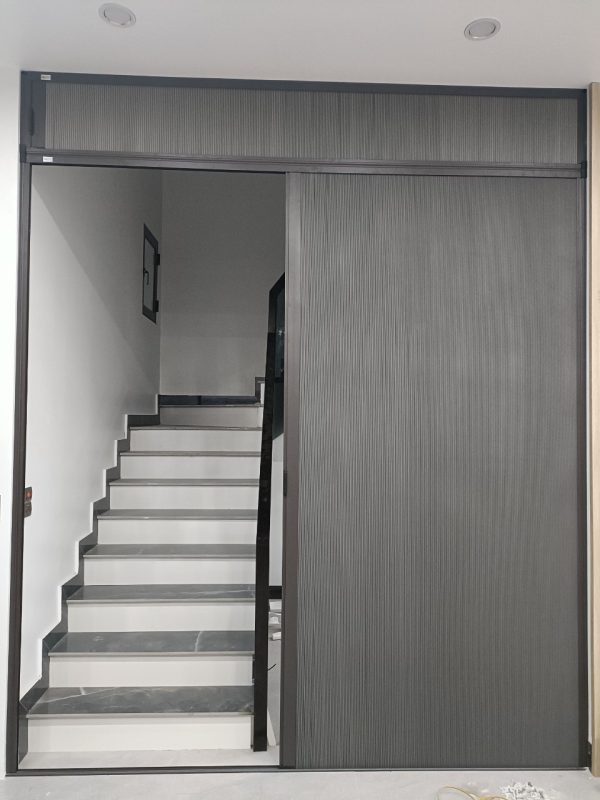 - Loại vách xếp tổ ong kéo về hai bên có hai cánh hai bên kéo như cửa thông thường. Loại này phù hợp với cửa có diện tích lớn. Chiều rộng tối đa dưới 5m.